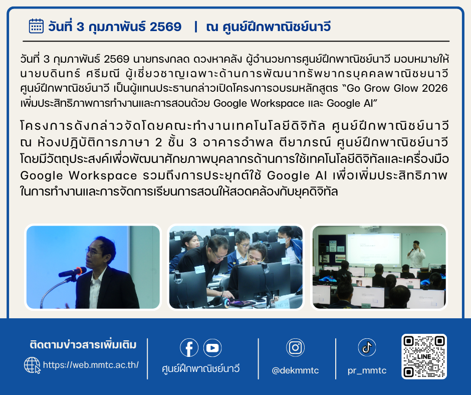 โครงการอบรมหลักสูตร "Go Grow Glow 2026"