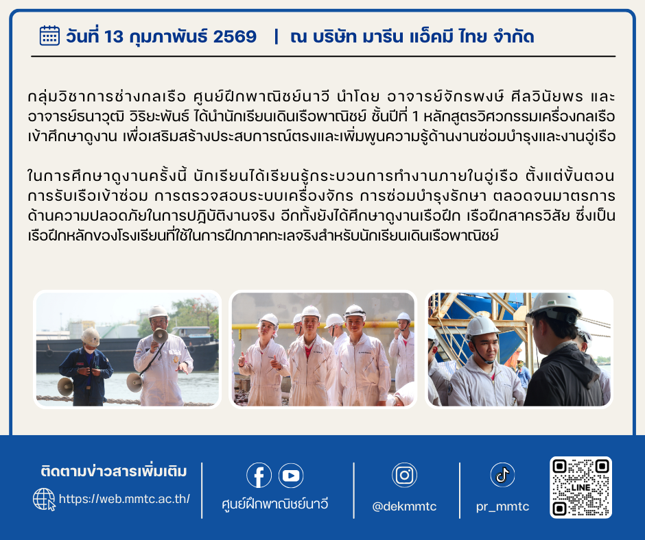 กลุ่มวิชาการช่างกลเรือ ศูนย์ฝึกพาณิชย์นาวี นำนักเรียนเดินเรือพาณิชย์เข้าศึกษาดูงานอู่เรือ